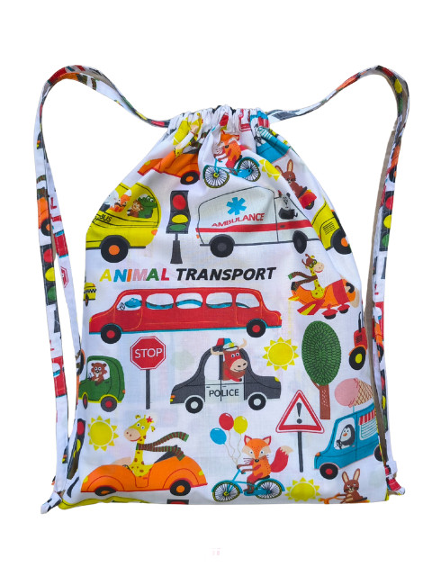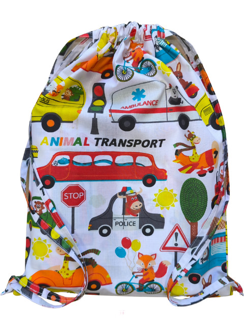 Az Aztadejó állatok autóban tornazsák azoknak a gyerekeknek készült, akik szeretik az állatokat, a vidám színeket, és a járműveket. Mintája fehér alapon állatok, járművek élénk vidám színekkel.