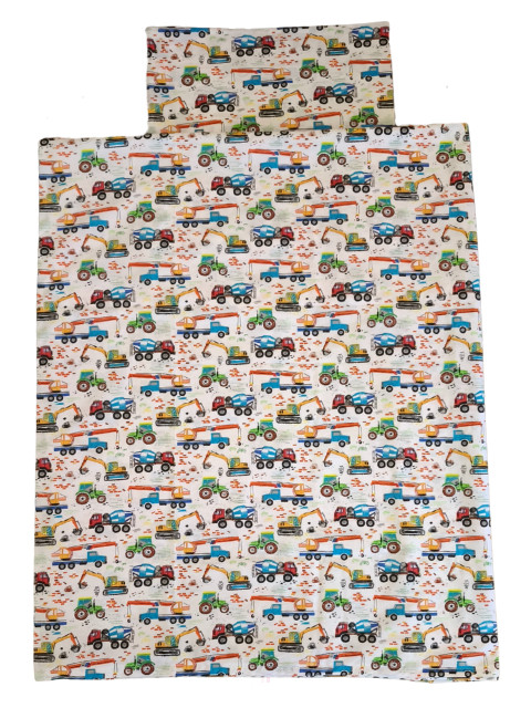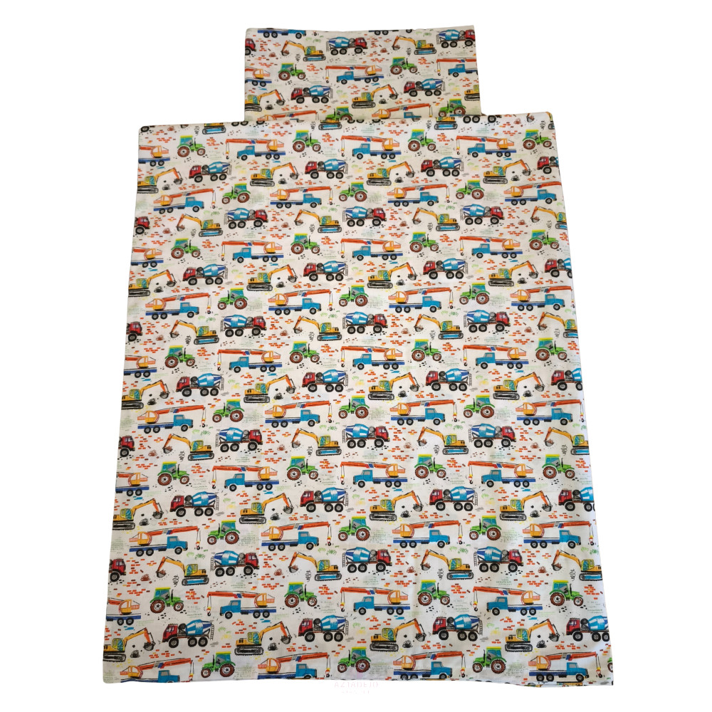 Ez a munkagépes mintás ágyneműhuzat szett kifejezetten bölcsődés és óvodás korú gyermekek számára készült. A népszerű munkagépes minta garantáltan belopja magát a kisgyermekek szívébe – sokan már első pillantásra beleszeretnek a színes darukba, markolókba és teherautókba! Ez a minta nem város részletekkel van rajzolva, mint a másik munkagépes ágyneműnk, hanem csak a munkagépeket láthatjuk rajta.