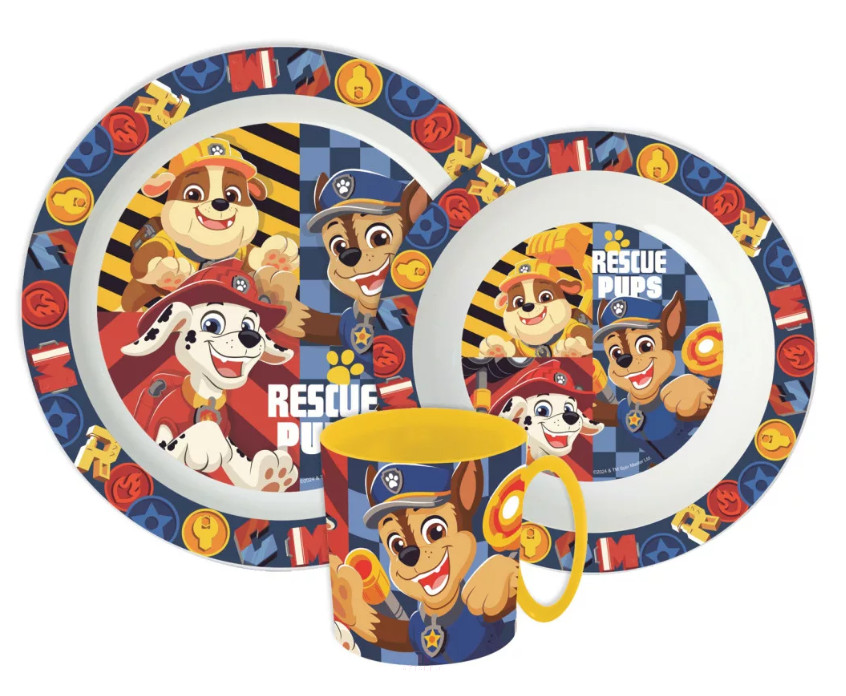 Mancs Őrjárat Rescue Pups étkészlet, micro műanyag szett bögrével 390 ml